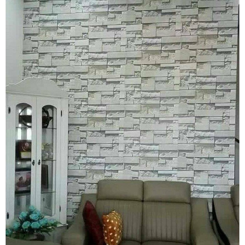 Wallpaper Stiker Dinding Motif Batu Alam Terang Ukuran 10m Sumber : shopee.co.id